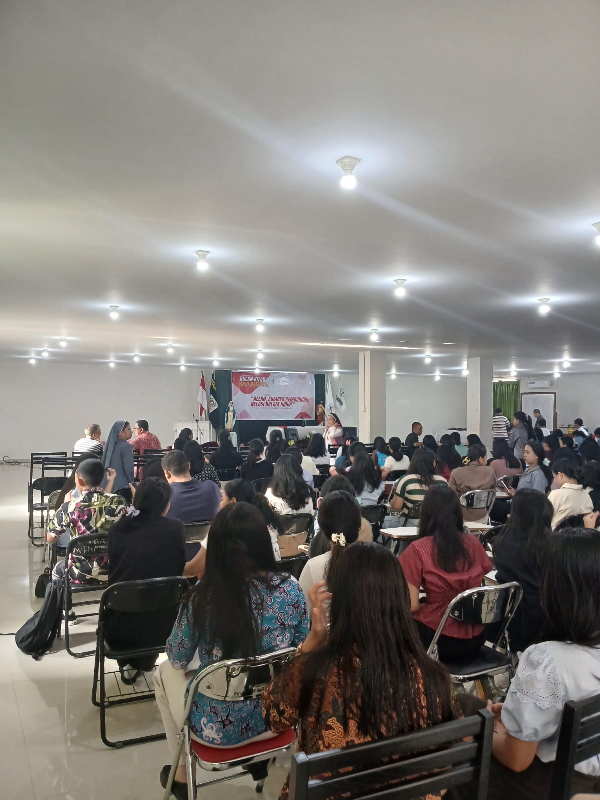 Pontianak-Sabtu, 27 September 2025, Kapelan Kampus II Pontianak Universitas Katolik Santo Agustinus Hippo menyelenggarakan Seminar Kitab Suci bertajuk “Allah, Sumber Pembaharuan Relasi Dalam Hidup.” Seminar ini menghadirkan Ketua Komisi Kitab Suci Keuskupan Pontianak, Romo Gregorius Eddy, CP, dan dipandu oleh Diakon Yoga Febrianto, calon imam Keuskupan Agung Pontianak yang sedang berpastoral di Kantor Sekjen Universitas.